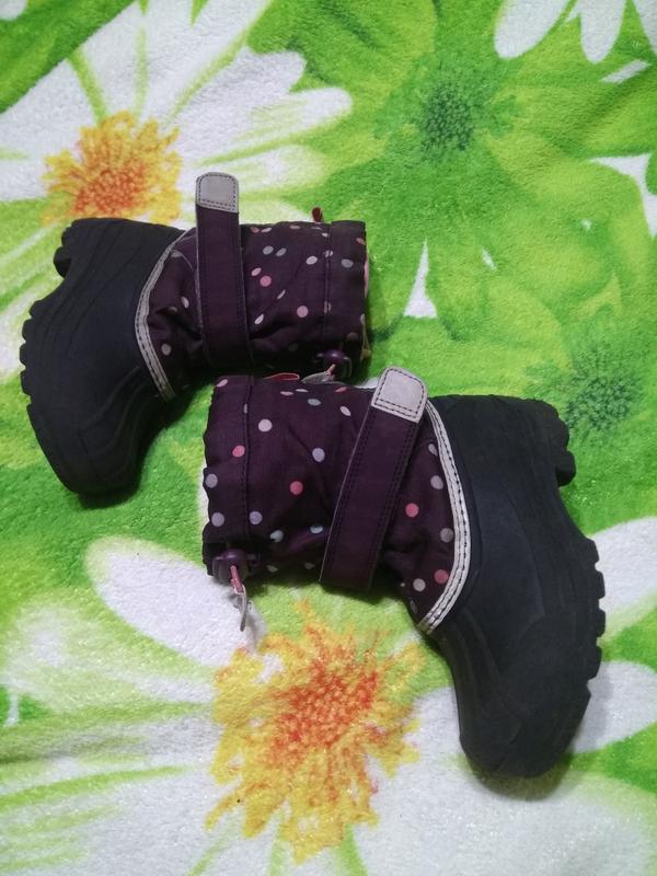 Термо сапоги,дутики,H&M,дуже яскраві із зйомним валянком із флісу.Розмір вказаний 28,або 10.5,мають світло відбиваючи елементи стан дуже хороший,по стельці валянка 18см.Високі мають куліску яка регулює ширину гомілки,щоб не попадав сніг,та вода.Низ чорний з якісної резини,яка не скользить і має хороше зчеплення,верх фіолетовий у кольоровий горох водонепромокаючий матеріал та липучка. При потребі скину ще фото. Підписуйтесь є багато брендового взуття та одягу для дітей різного віку та дорослих. Відправляю після повної оплати на картку Приватбанку зручною для вас поштою.