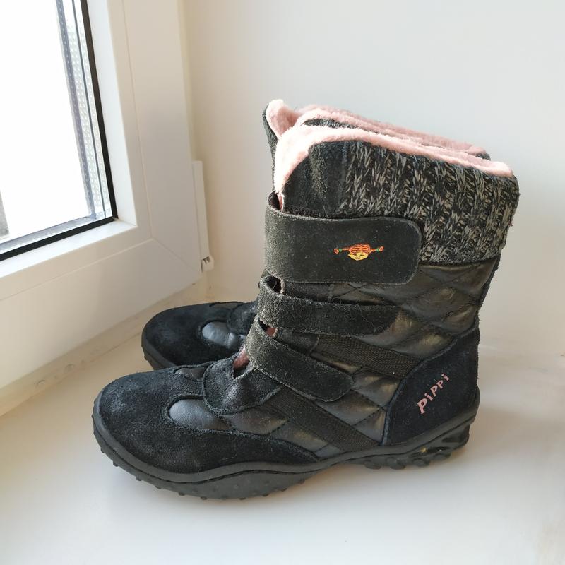 Замшевые зимние ботинки сапоги Pippi, размер указан 32, стелька 22 см. от края до края. Материал верха натуральная замша + искусственная кожа. Липучки липнут отлично. В середине утеплены флисом. Отлично подойдут на еврозима. Носсы не взбиты, отличное состояние.