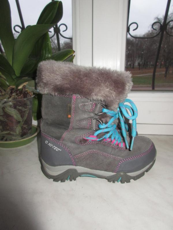 Зимние термо ботинки Hi-tec 30 р Длина по стельке - 18,5 см до загиба Высота - 15 см Верх-натуральная замша На шнуровке. Очень тёплые ,не промокают