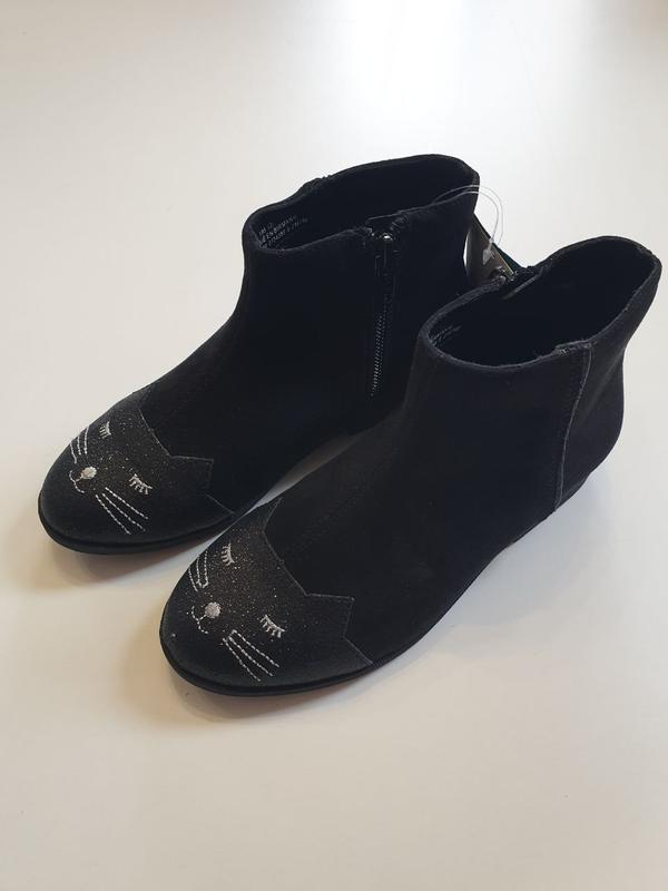 Ще одна новинка з нової демі колекції від H&M! Суперові демі черевички виповнені в еко нубуці та мають гарний малюнок у вигляді киці. Устілочка з текстилю, а підошва має зручний каблучок. Фіксуються на ніжці за допомогою бокового замочка. Мають легкий утеплювач всередині. Ці демі ботиночки заслуговують на ваші ❤ В наявності розміри 26 28 29 30