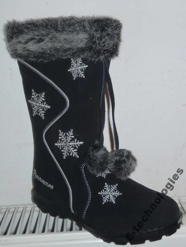 Отличные теплые и водонепроницаемые сапоги OUTVENTURE OUTVENTURE FLAKE . Артикул: MJ11 Материал: натуральная кожа Размер: 33 Длина стельки: 22см. На ногу 21см Высота 27см Цвет: Черный Очень теплые, утеплены искусственным мехом, Верх - натуральная замша с пропиткой