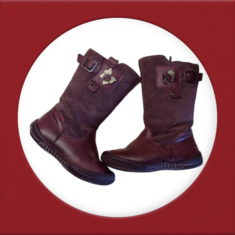 Сапоги FRODDO из натуральных материалов: кожа и замш, теплая подкладка из овчины. Невероятно удобные и комфортные. Аккуратно смотрятся на ножке. Сапоги очень теплые, демисезонные. Размер 26. Подошва - 18 см, стелька (не вынимается) 16,2-16,5 см. Носилы долго. Бралы с запасом, так как отлично фиксируется и удобно держатся на ножке, носили с раннего возраста (ориентивно с 2 до 3,5 лет). Ориентируйтесь не на наш возраст, а на замеры. Но смело можно брать с запасом. Высочайшее качество, шикарная фурнитура, отличное состояние.