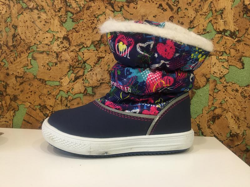 Очень удобные и тёплые сапоги для вашей малютки, совместное итальянское производство. Все нюансы на фото. Сбитость носков при носке незаметна из-за темно-синего цвета. Ножки не промокали, не замерзали, на овчине. Есть светоотражающие полоски. Размер 25, носили с 2,4 до 2,8 лет.