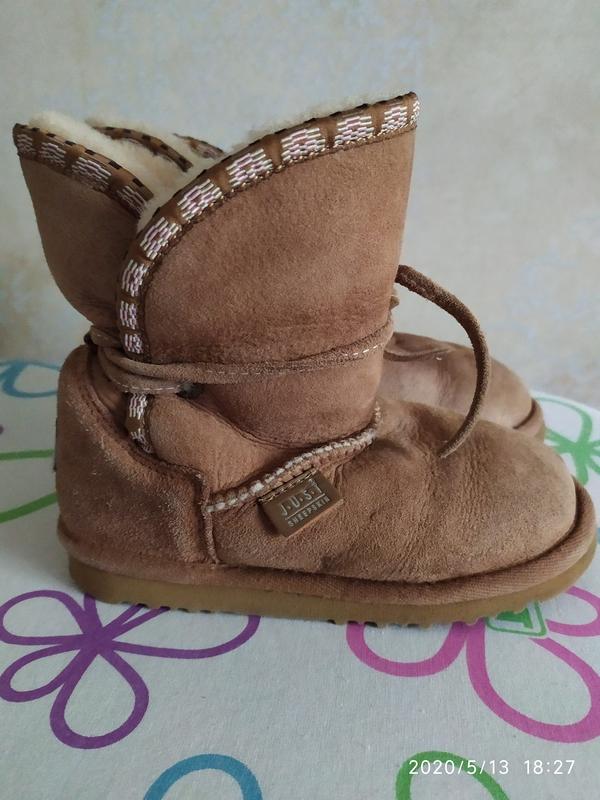Обувь в отличном состоянии.Полностью натуральная кожа,овчина.Привезена из Англии.Цена на сайте 120 фунтов.Длина по стельке 19 см .Just sheepskin. Единственный нюанс это требуется чистка (обговаривается)