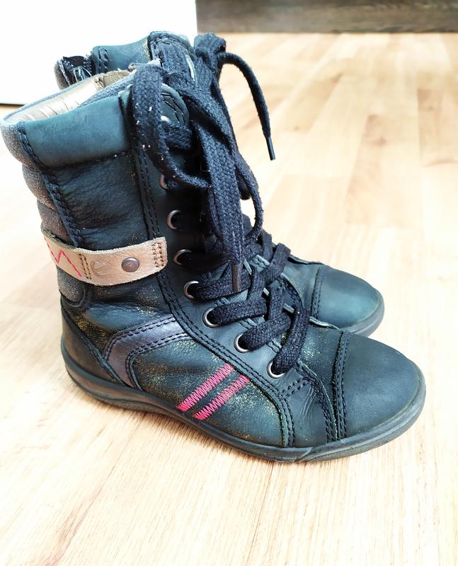 Непревзойденные ботинки Ecco. Фурнитура: молния/шнурки. Внутри: текстиль. Стелька: текстиль/пеноматериал. Подошва: резина. В обуви ecco ребенку будет максимально комфортно и легко. Проверено не раз. Размер: 27. Стелька: 17 см.