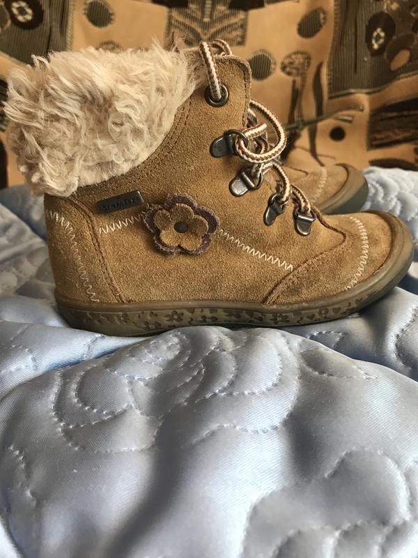Ботинки натуральные замшевые, очень красивые и тёплые на холодную осень и евро зиму. В средине мех и стелька войлок, ножка не замерзала никогда, подошва прорезиненая. Размер 24. По стельке -15,5 см. Бренд SympaTex.