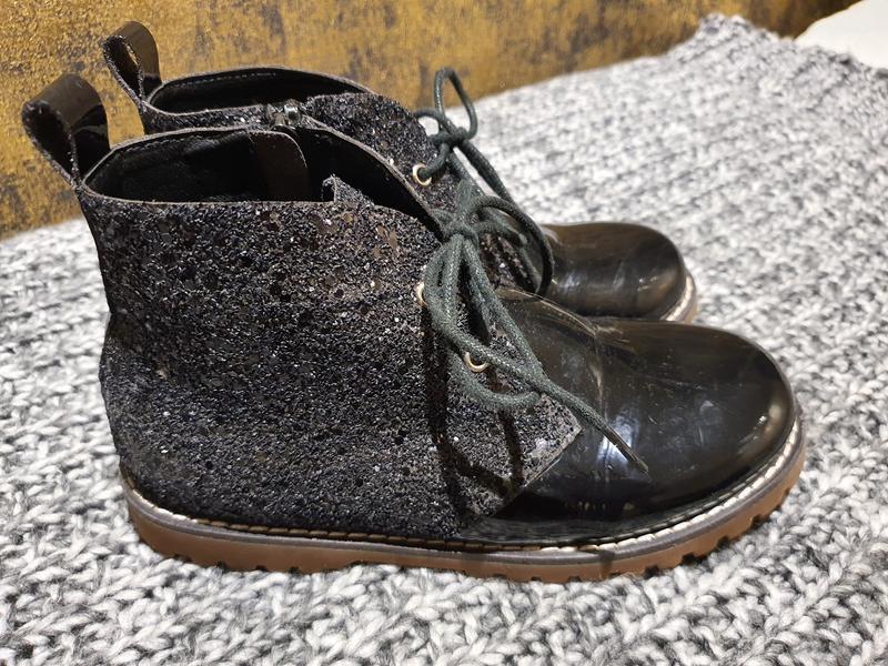 Эти ботинки настоящая находка для маленьких модниц. Они подходят абсолютно ко всему - и к платьям, и брюкам, и джинсам. Подошва негрубая, лаковый перед и блестящий задник; молния сбоку упрощает жизнь владелице.