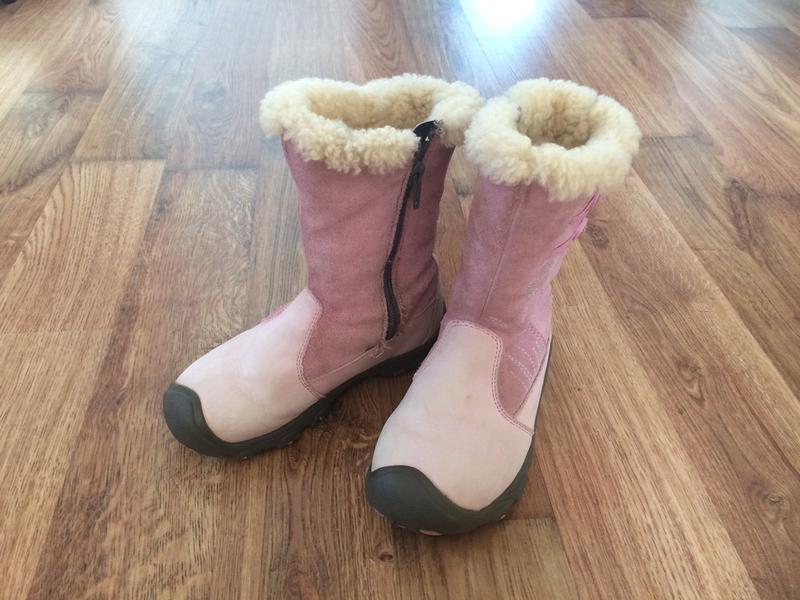 Дуже теплі зимові чобітки Keen, розмір вказаний 30 європейський ,але підійдуть швидше на 28,5-29 (устілка 18,5 см від краю до краю).Натуральна шкіра+замша. Захищений носочок. Стан дуже хороший,але замінили замочок на правому чобітку і прошили його сірими нитками (на лівому - рожевими прошитий). Цей нюанс абсолютно непомітний, хто не знає, той і не здогадається)) Але ціна через це знижена.