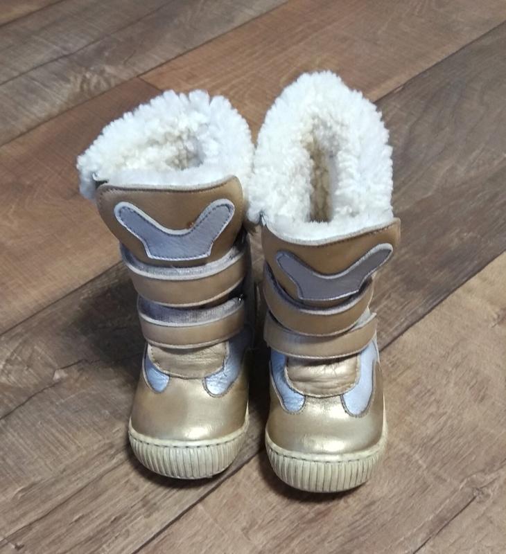 Зимние полусапожки на цигейке,супер тёплые,стелька тоже цигейка. Стелька, приблизительно,14.5-15см,тяжело замерить.Носки были немного сбиты,но я закрасила золотой краской для обуви.В целом состояние хорошее.