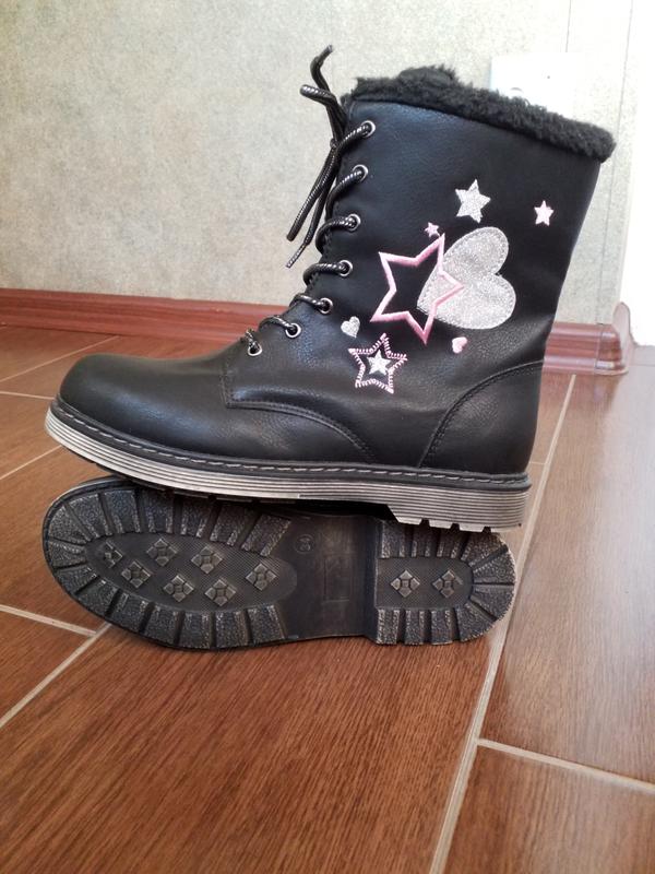 Классные ботинки польского бренда Cool club изготовлены из качественного кожзама , украшены аппликацией и шнуровкой с люрексом. Полномерные. Длина стельки 22, 5 см. Утепленные мехом средней плотности. Удобная и нескользящая подошва. Высота ботинок 15 см, высота каблука 2,5 см, подошва 1,5 см. Смотрите также мои другие объявления. Только оригинальные и качественные вещи. Удачных покупок и приятного выбора !