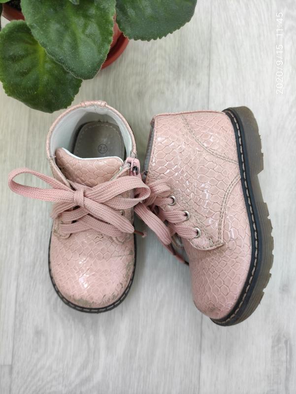 Демисезонные ботинки для девочки, р. 25 (стелька 15 см). Цвет: бледно-розовый. Застёжка: молния и шнурки. Есть дефект: потёртые носки. Состояние видно на фото. После одного ребенка. Могу сбросить дополнительные фото. 100% оплата на карту. Отправка укр. и новой почтой.