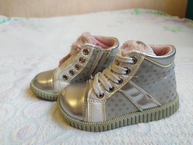 Демисезонные ботинки на девочку. Состояние хорошее, один нюанс сбит один носок, на фото указала. Кожаная стелька с супинатором, стелька 13 см.