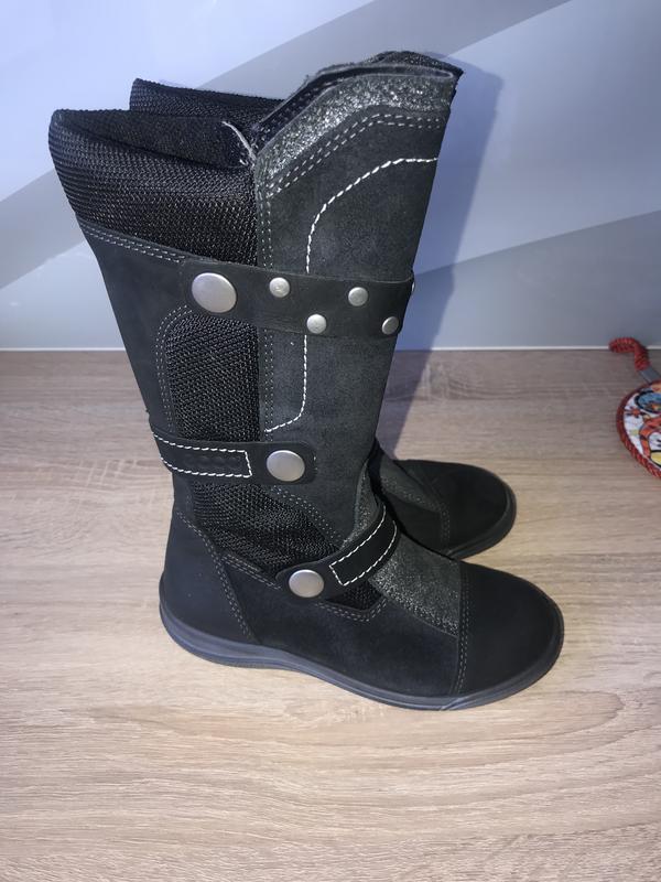 Стильні, модні та якісні чобітки відомого бренду. Розмір 27, довжина устілки 17 см. Шкіряні. На худеньку ніжку( не для повненьких дівчаток). Стан ідеальний: без подряпин, дефектів та потертостей. Взували лічені рази, бо мали багато змінних.