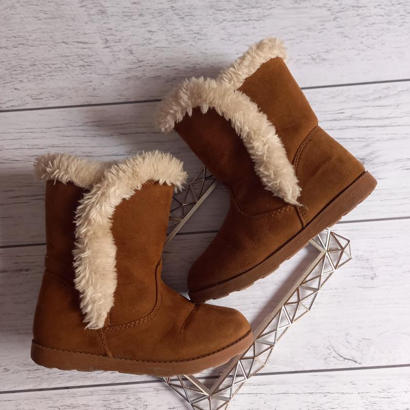 Класні м'які демі уггі. В ідеальному стані. Не дивлячись на те ,що натуральна замша не носяться чудово , носили весну і досить часто навіть взимку одягали ,так як зима була досить теплою. Залишилися дуже задоволені якістю. І ніжки були теплі. Устілка 18 см. Брали на ніжку 17 див. Всередині штучне хутро густий. Пересилаю Обміну та повернення немає