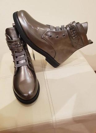 Бронзовые деми ботинки для девочки на флисе p.35