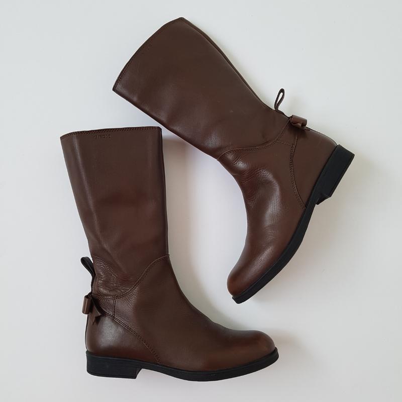 Кожаные сапоги GEOX Модель J Agata 8449A Цвет коричневый Состояние 5 из 5 ( практически новые) 📌Размер 33 📌Длина стельки 21,5см Общая высота 26см ( до каблука) Высота каблука 2см Верхняя окружность 28см (внутренняя) Модель выполнена с высококачественной кожи. Перфорированная подошва (запатентованная Geox Respira в Италии) обеспечивает максимальную воздухопроницаемость и длительный комфорт. Подошва выполнена из термопластичной резины, лёгкая, прочная с превосходной антискользящим эффектом. Верх из кожи. Стелька изготовлена из гигиенического материала с антибактериальными свойствами. Удобные, комфортные сапоги GEOX хорошо сочетаются с различной одеждой. 📌Очень красивые!!!👍👍👍 📌Фото реальные! 📌Без торга! Оплата и доставка 💳 Оплата на карту приват банка 🚛📦 Доставка Новой почтой