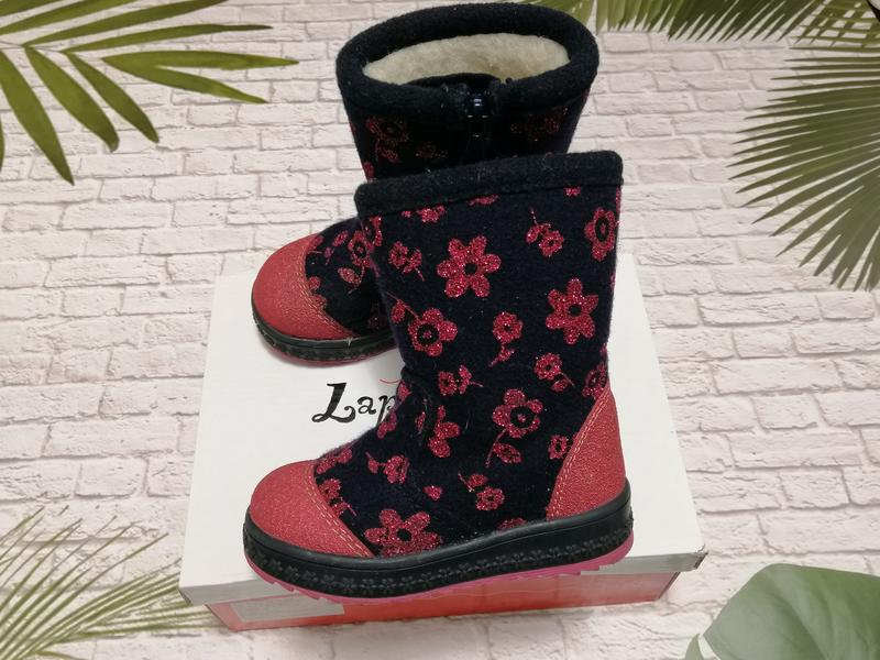 Размер 25, стелька 15 см. Снаружи войлок, внутри овчина, очень теплые. Состояние новых, очень красивые, не тяжелые.