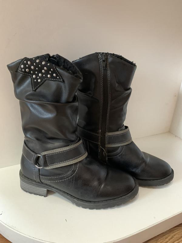 Сапоги осенние утеплённые, кожзам, стелька 21 -21.5 см, высота 24 см, сбоку на молнии, в очень хорошем состоянии, носили мало из за карантина. Размер 34