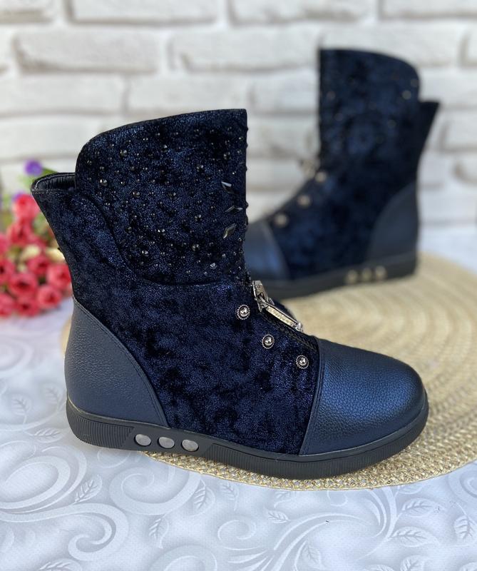 В наличии Осенние сапожки Верх кожи зам Сбоку молния Цвет синий 34-21,5 см 36-22,5 см