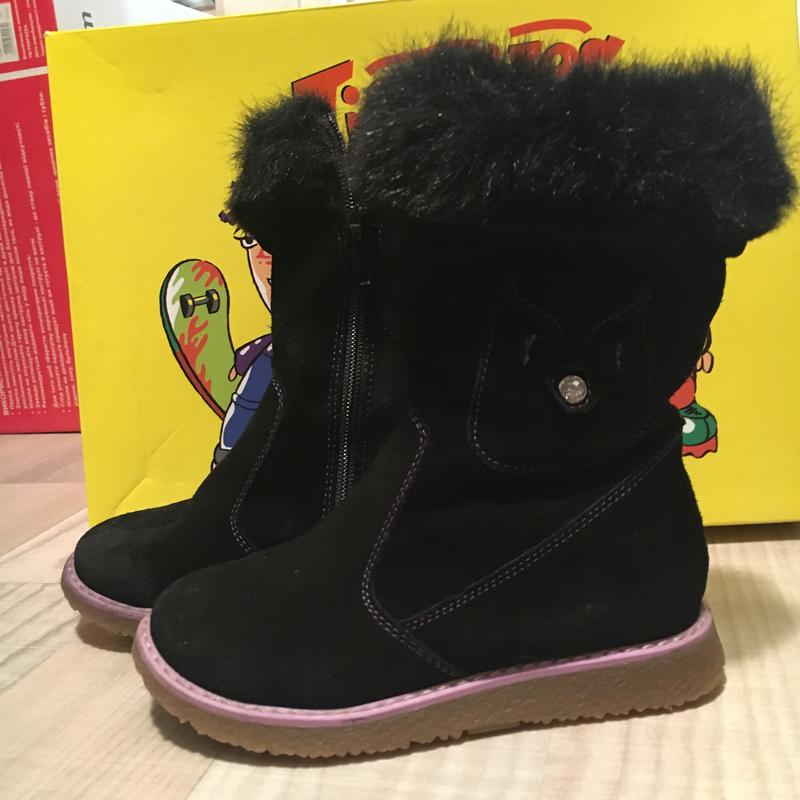 Сапожки зимние, верх-натуральная замша, внутри шерсть. Состояние новых! По стельке 17 см, на ножку -16 см.