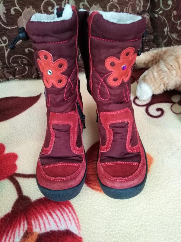 Дуже хороші термо чобітки. Не промокають, ніжка завжди тепла і суха. Носили активно 2 зими, хоча були ще на зміну. Стан хороший. З нюансів : потерті носки (не критично, носили і так), поміняли в майстерні замки (один почав розходитись), загубили один камінчик (додала фото). Правда не бачила, замітила, як фоткала. Видно, що ношені, та ще послужать. Чобітки не зносимі, дуже добротні. Звертайтесь, відповім на всі питанння.