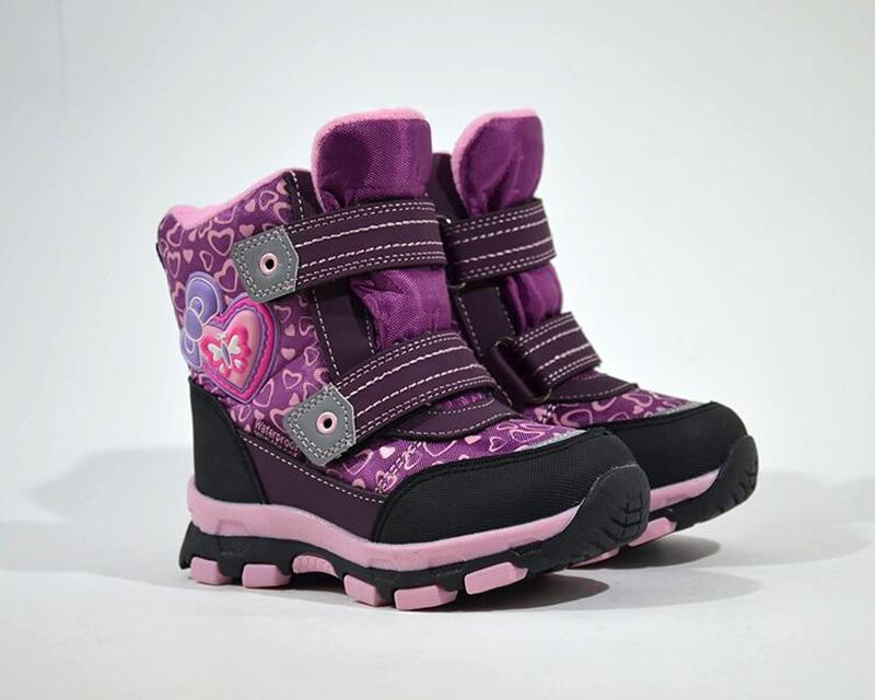 Сноубутсы TOM.M сердечки фиолетовый р.27-32 Зимние ботинки для девочек. Верх - искусственная кожа, водонепроницаемый текстиль, светоотражающие вставки. Внутри - шерсть (смешанный состав). Носок защищены от сбивания. Размерная сетка: 27р. по стельке 17,5 см 28р. по стельке 18,0 см 29р. по стельке 19,0 см 30р. по стельке 19,5 см 31р. по стельке 20,0 см 32р. по стельке 20,5 см р3611E
