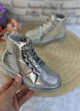 В наличии Верх-экокожа Украшены стразами Внутри утеплены плюшем Стелька кожаная с супинатором Фиксация- шнуровка,Сбоку молния 29-18 см