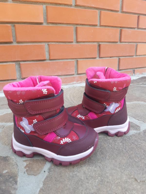 Непромокаемые и непродуваемые термо ботиночки для Вашей девчушки. Подошва очень мягкая и эластичная. Утеплитель-овчина. Р.25 ст.15,5 бордо