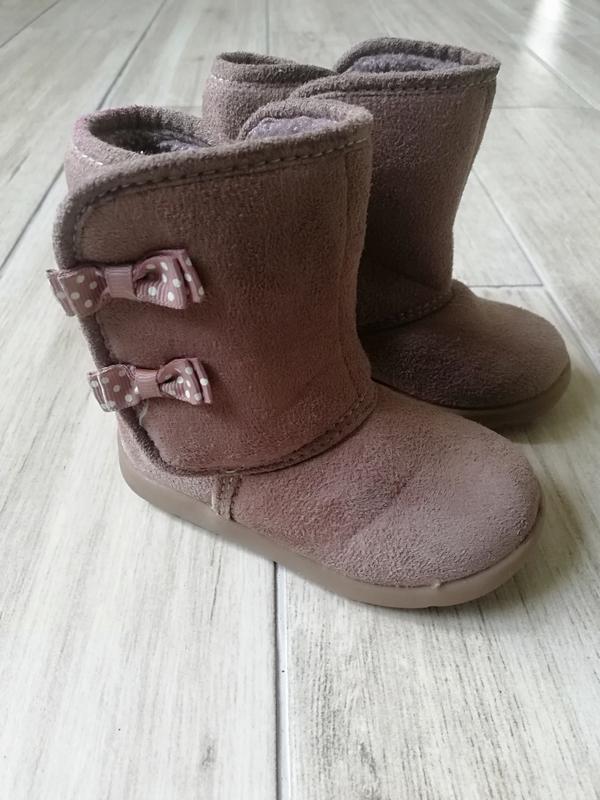 Класні чобітки для стильної дівчинки. Розмір вказаний 23 Підходять для холодної пори і теплої зими. Задник твердий, взувати дитину легко. Є незначний нюанс