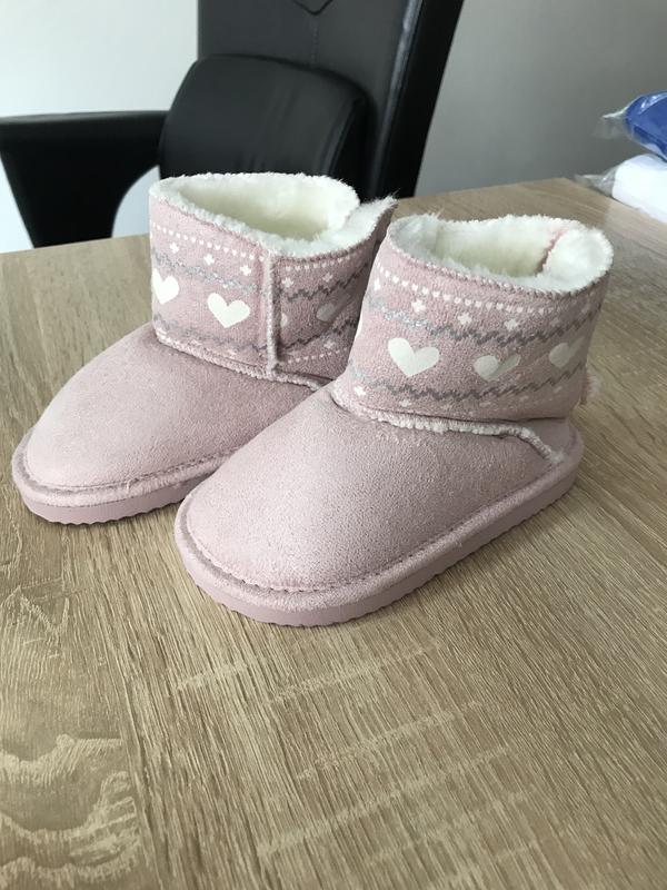 Тепленькі уги на дівчинку від Н&М. Розмір UK-5,5, EUR-22, US-6. Нові. З-заду на міцній липучці, тому зручно і легко одягати на ніжку. Устілка - 13,5 см