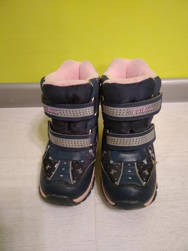 Зимние термосапоги ТомМ р.25 (стелька 15,8 - 16 см). Состояние очень хорошее: потертостей сверху нет, подошва целая, немного затерты липучки внутри на сгибе (на фото показано), но держат отлично. Внешне идеально выглядят. Отправка Новая почта или Джастин.