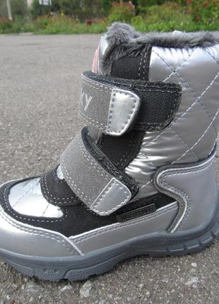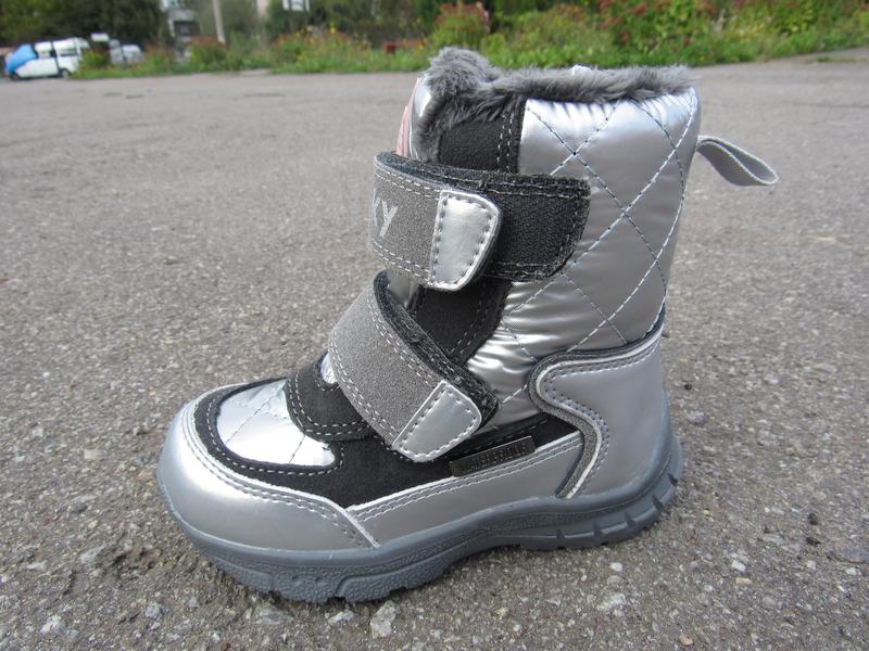 В наличии очень качественная зимняя обувь на девочку. Система Waterproof от мокрых ног. В этой обуви вы точно можете быть уверенными в сухости и тепле ног вашего ребенка. Шерстяная стелька. В наличии размеры 24-31 В качестве бонуса отправляю Укрпочтой за свой счет. 24 стелька 16 25 стелька 16,5 26 стелька 17,5 см 27 стелька 18 см