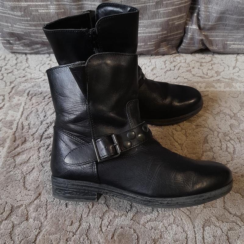 Продам фірмові з натуральної шкіри з EU черевички в хорошому стані. Підошва не потерта , вона така є від виробника чорна з сірим . По виробнику 35 розмір, але буде на 36 , так як устілка 24 см. Устілка біля носка утеплена, біля п‘ятки шкіра. Чобітки на підкладкі з теплого текстиля..