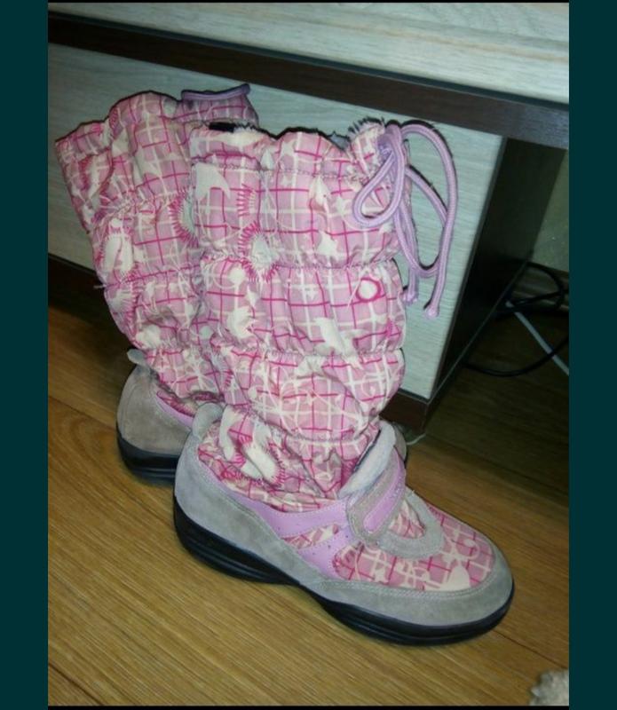 Зимние сапоги Geox, на меху. Размер 32, стельку измерять не получается, т.к. она не вытягивается, примерно 20-21см. Подъём регулируется липучкой. Высота сапог 29 см.