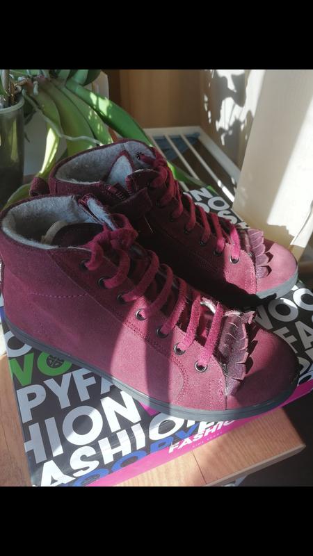 Демісезонні ботінки для дівчинки. Розмір 34.Утеплені. Отропедична устілка. Носилися один сезон, швидко зростала ніжка.Стан дуже гарний, шкарпетки не стерті. Із недоліків надірвався язичок на задніку, на фото вказала.