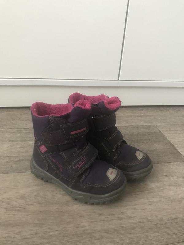 Наши любимые термоботинки на холодную осень/тёплую зиму. 26 размер. Фирма Super fit, проверенная временем. Дочка обожала их, но в этом сезоне уже малы, купили такие же на размер больше. Не промокают, тёплые, лёгенькие, удобные, на любой подъем. В хорошем состоянии, носили один сезон. Липучки держат хорошо. Из нюансов чуть стертый носочек, видно на фото, но в жизни практически незаметно. Стелька не вынимается, примерно по длине 16 см. Если есть вопросы , пишите, с радостью отвечу.