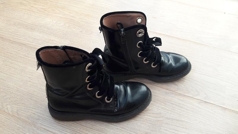 Брендовые демисезонные ботиночки девочке. На шнуровке и молнии. Черные. Размер 32. По стельке 20,5 см. Фирма Twin set Simona.