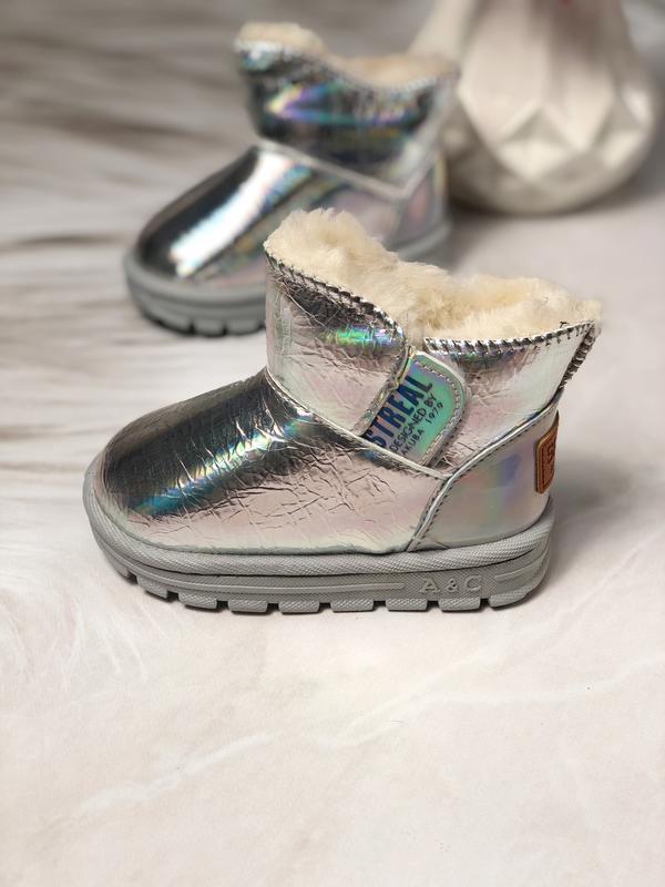 Угги на девочку Голографик Нереально переливаются Стильные, модные, и ещё и теплые С боку липучка Плотный мех исскуственный В наличии 28-16,5
