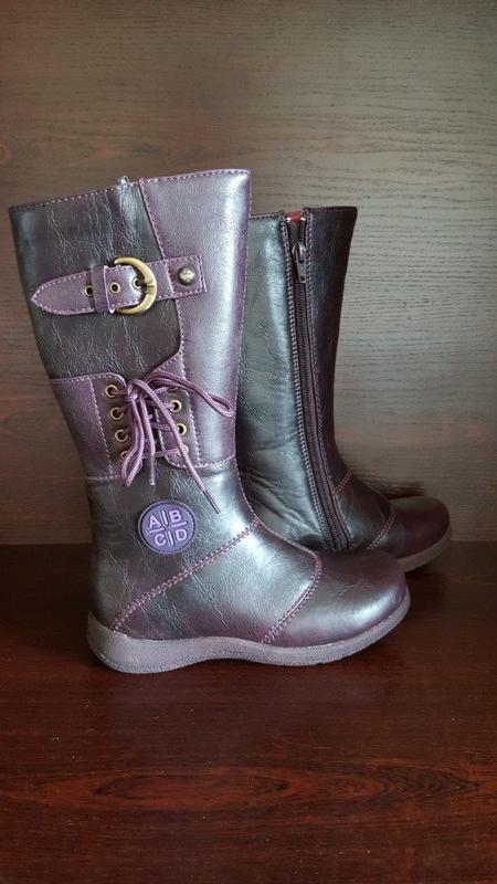 Демисезонные сапоги Arial Цвет-баклажановый. Очень качественно всё сделано. Экокожа, текстиль. Подошва-полимер. Устойчивый задник, супинатор. . р.31(стелька 19,5 см по факту, высота сапога с подошвой -27 см, подошва- 1-2,5 см, ширина голенища в верхней части-14,5 см ); . р.32(20,5 см по стельке, 28см-высота, 14,5 см-голенище); . р.35(22,5 см по стельке, 30см-высота, 16 см-голенище); . р.36(23 см по стельке, 31см-высота, 16,5 см -голенище).