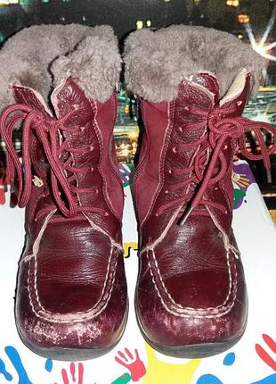 Шкіряні черевички на цигейке. Дуже теплі. Устілка 15.5 див. Кремом спеціально не замазувала, щоб видно було недоліки. Якщо покремить, все красиво. Є замок і шнурівка, можна регулювати по ніжці.