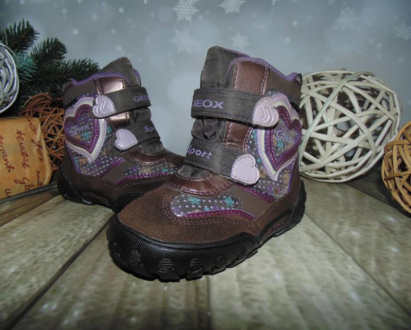 Чтобы нам не потеряться не забудьте подписаться БУДЬТЕ всегда в курсе НОВИНОК,,АКЦИЙ,РАСПРОДАЖ!!! *********** Термоботинки Geox на мембране GeoxTex 23размер. -по стельке 15см от края до края -до загиба 14.5 см -ширина 6 см -по подошве 16см -высота 13 см Состояние:Б/У,отличное Температурный режим :+10-25С Материал: *верх : замша+мембранная ткань *внутри: меховой утеплитель *стелька: войлок,дышащая,анатомическая ***GEOX - подростковая и детская обувь спортивно-городского стиля. ***Во всех моделях обуви GEOX используются уникальные защищенные патентами перфорированные подошвы, создающие эффект "дышащей обуви" ***Ботинки с системой GeoxTex - полностью водонепроницаемые и "дышащие". .***Обувь Geox (Джеокс) позволяет дышать вашим ногам! Запатентованная система перфорации в подошве создает естественную циркуляцию воздуха в обуви ***Удобная фиксация на двух липучках, широко раскрывается голенище для удобства одевания на ножку ребенка. И естественно все прочие достоинства обуви Geox. ***GEOX.- один из мировых лидеров на рынке детской обуви. Обувь GEOX - это в первую очередь удобство, функциональность, применение самых инновационных технологий в производстве детской обуви. ***Geox – это непромокаемая обувь, в которой нога дышит не только через верх, но и через подошву. Таким образом, стопа, на которой сосредоточено большое количество потовых желез, может свободно дышать, а ноги остаются теплыми и сухими.
