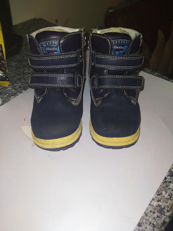 зимние ботинки в очень хорошем состоянии размер 24 натуральная кожа ,фирма шалунишка, стелька имеет супинатор длинна 15.5см ( ортопедические) твердый задник и каблучок Томаса. Из дефектов только сломана собачка а так за ок рабочий пользовались без собачки или можна одними липучка и.