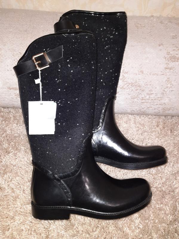 Сапоги Zara, оригинал, размер 34/35, низ из высококачественной резины, верх- войлок, внутри на подкладке. Рассчитаны на слякоть. Очень практичные. Смотрятся очень стильно . На ножке аккуратно. Стелька 23 см, высота 33 см.