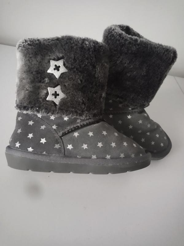Очень теплые уги, верх- натуральная замша, серые с серебристыми звёздочками. Размер по стельке 16,5см