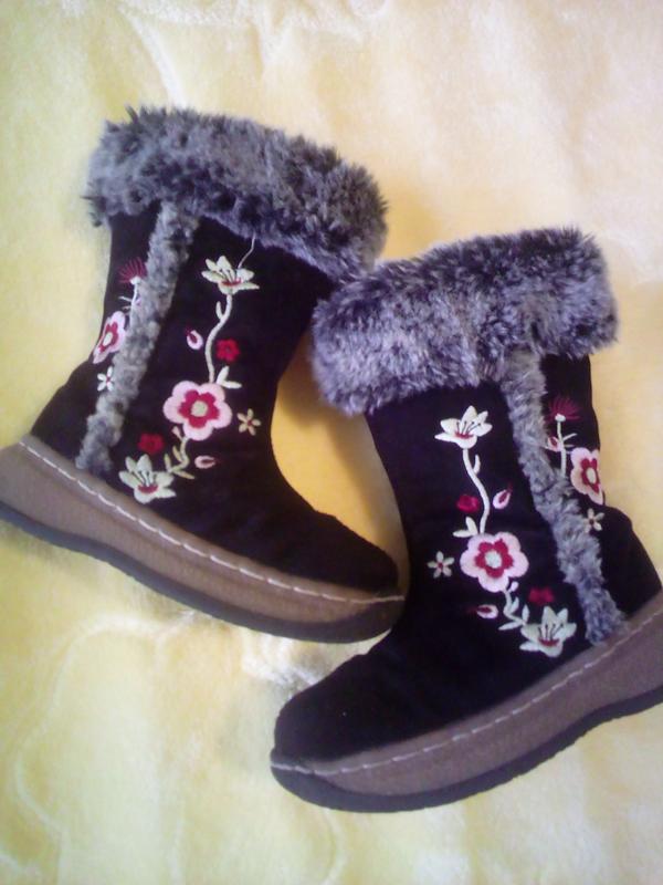 Шикарні замшеві сапожки з вишивкою, в ідеальному стані, висота 20см.(з підошвою) ширина 10.5 см(половина). На худеньку або середню ніжку, підйом не дуже високий, на пухкеньку ніжку не підійдуть. Що цікавить, запитуйте. Оплата на карту.