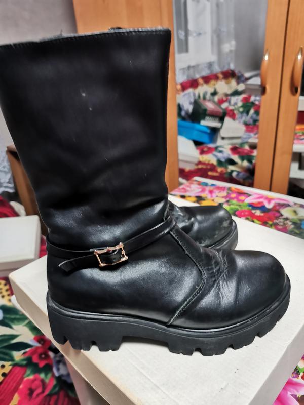 Натуральная кожа, овчина. Состояние хорошое. Очень тёплые и удобные. Прослужат не один сезон.