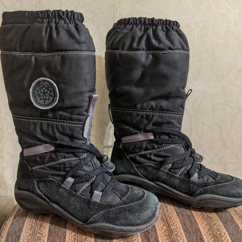 Зимние сапоги фирмы Ecco, очень качественные, в отличном состоянии,цвет универсальный,можно как мальчику,так и девочке, внизу высококачественный замш,верх-высокопрочная мембранная ткань Gore-tex, верх на резиночке во избежании попадания снега, размер 32