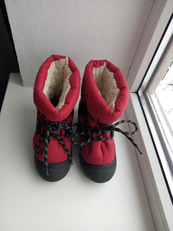 Теплі дитячі фірмові чобітки.Устілка 17,5см.Недолік на правому- на останніх фото видно.