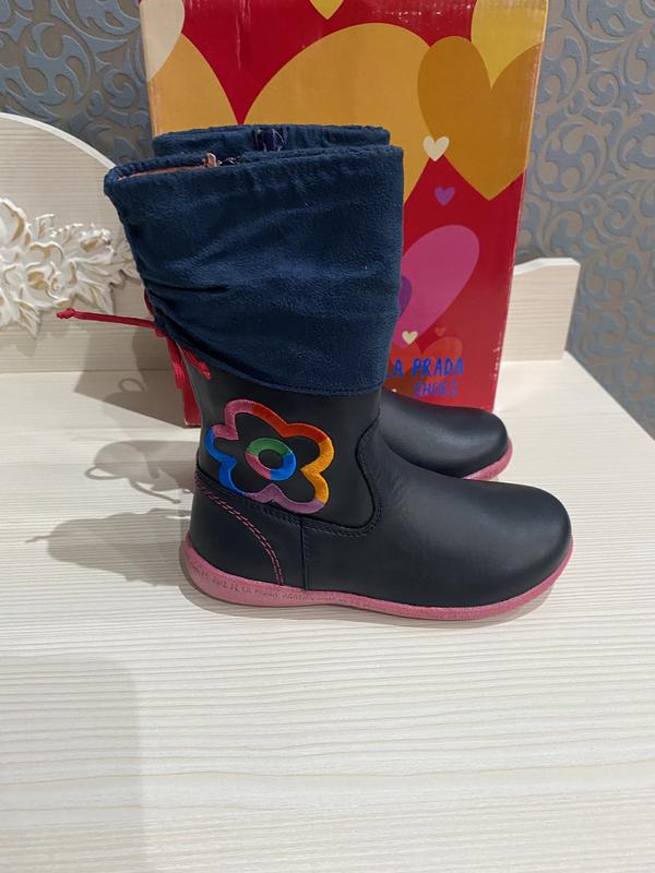 Демисезонные сапожки Agatha Ruiz de la Prada Натуральная кожа , внутри комбинированные натуральная кожа /флис, стелька кожа , застёгиваются на молнию Размер 27 { стелька 16,5 см } Бренд Испания / Производство Испания Новые с этикеткой , в коробке Цена 950 грн