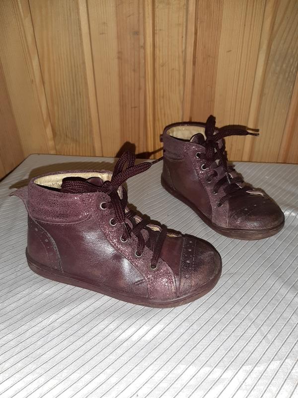Фиолетовые кожаные ботиночки с блестящими вставочками, модель на шнурочках. Размер-26, по стельке-16,5см.